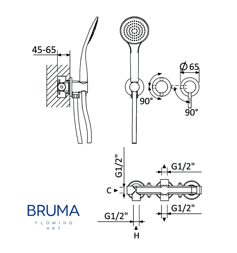 BRUMA LUSITANO MONOMANDO BAÑO-DUCHA EMPOTRADO 3 VIAS