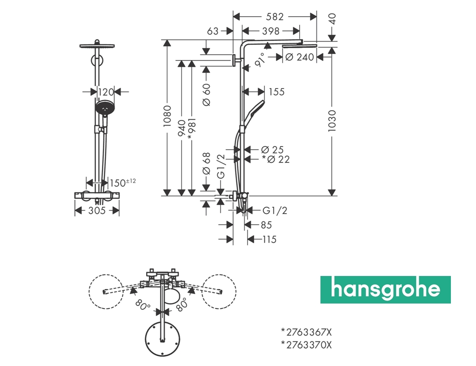 COLUMNA DUCHA TERMOSTATICA SHOWERPIPE 240 HANSGROHE Ref.27633000