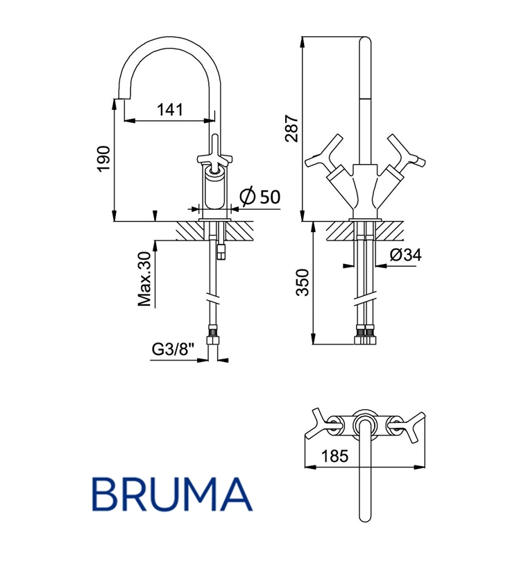 MEZCLADOR LAVABO GENESI BRUMA Ref.1910101CR