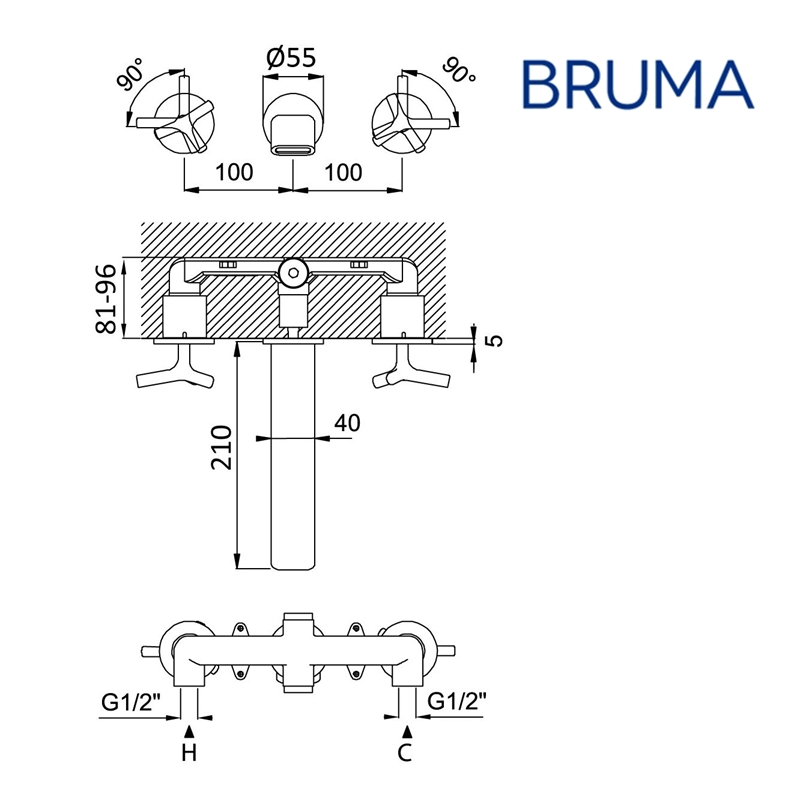 BRUMA GENESI BATERIA LAVABO MURAL