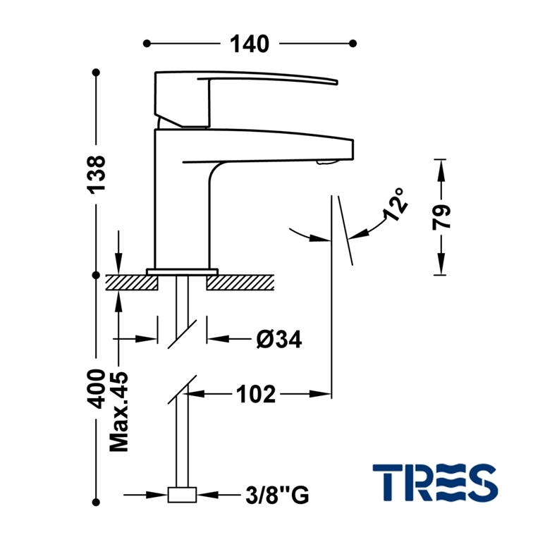 MONOMANDO LAVABO FLAT TRES Ref.20410201
