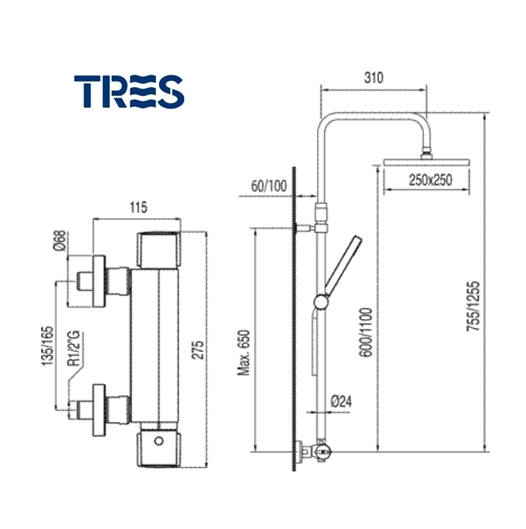 COLUMNA DUCHA TERMOSTATICA LEX TRES Ref.190213
