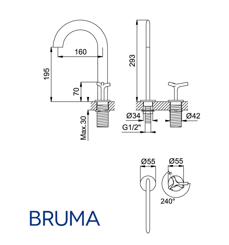 MEZCLADOR LAVABO MANDO LATERAL GENESI BRUMA
