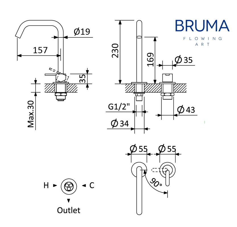 BRUMA LEAF MONOMANDO LAVABO CON MANDO SEPARADO