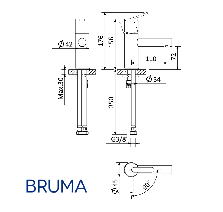 MONOMANDO LAVABO LUSA BRUMA Ref.1010004CR