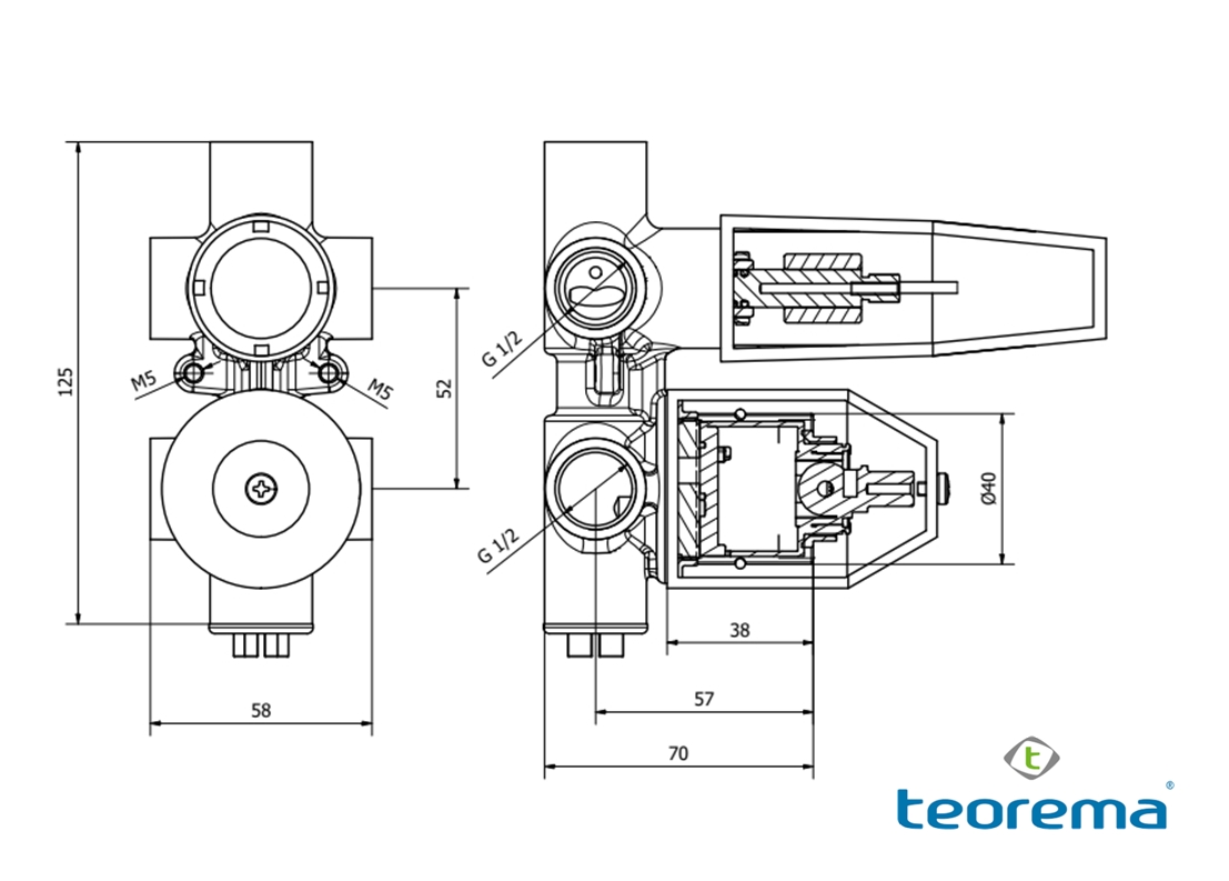 CUERPO EMPOTRADO MONOMANDO DUCHA 2 VIAS TEOREMA