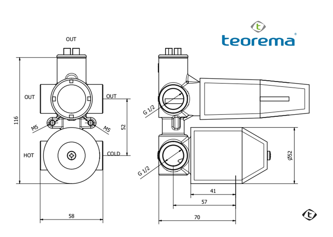TEOREMA CUERPO EMPOTRADO MONOMANDO DUCHA 3 VIAS