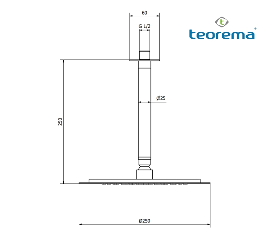 TEOREMA TREUNOSEI DUCHA A TECHO 25cm INOX