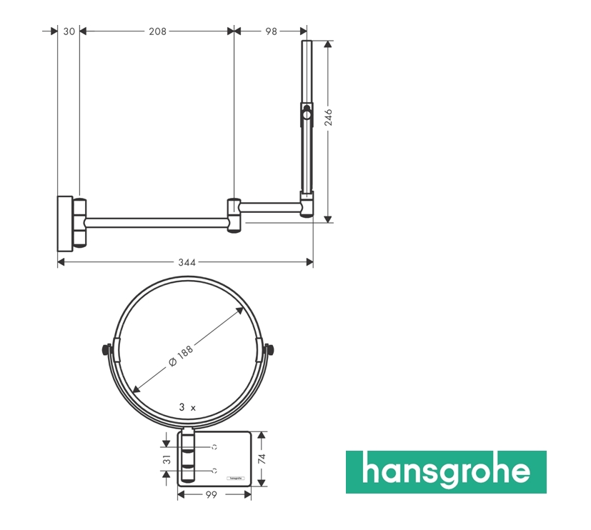 HANSGROHE ADDSTORIS ESPEJO DE AUMENTO x3