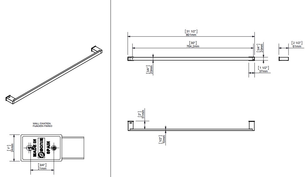 TOALLERO BARRA 75cm S-CUBE SONIA
