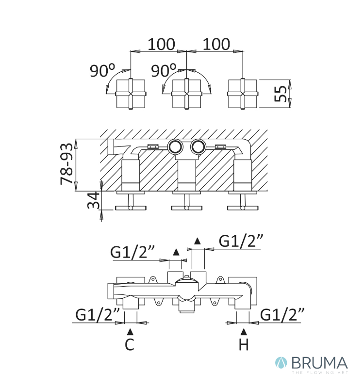 BRUMA HERA BATERIA PARA BAÑO Y DUCHA EMPOTRABLE