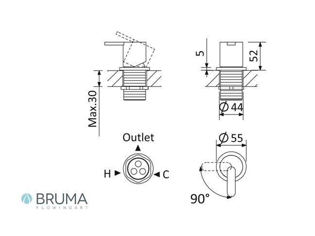 BRUMA X-ALPHA MEZCLADOR MONOMANDO SOBRE ENCIMERA