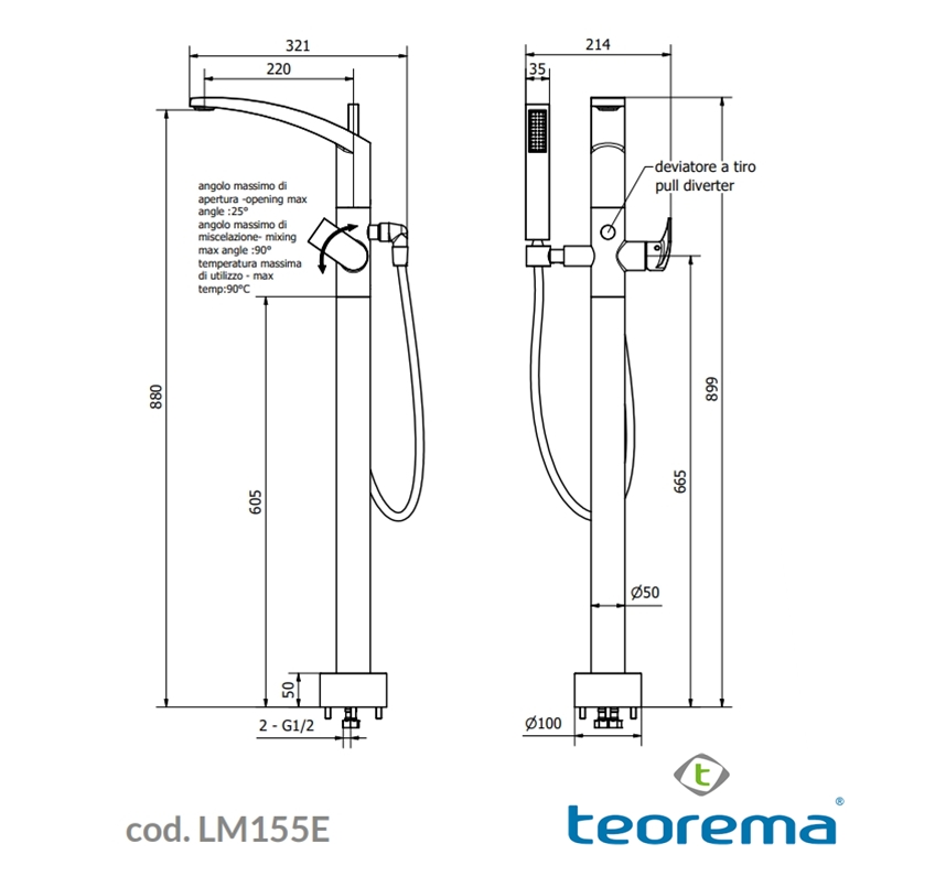 TEOREMA LUME MONOMANDO BAÑERA DE PIE