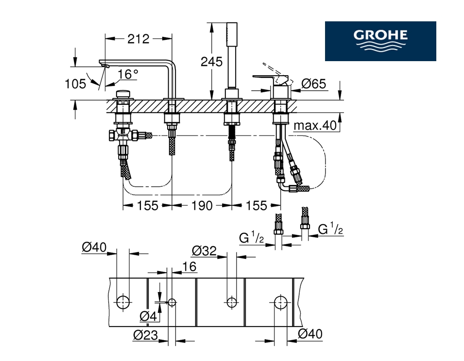 Monomando baño y ducha 1/2" LINEARE GROHE Ref.19577001