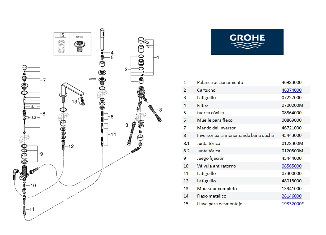 A completar con parte interior Ref.29037000 (sección recambios GROHE)