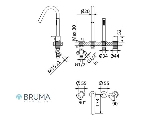 MONOMANDO PARA BAÑO Y DUCHA DE REPISA X-ALPHA BRUMA