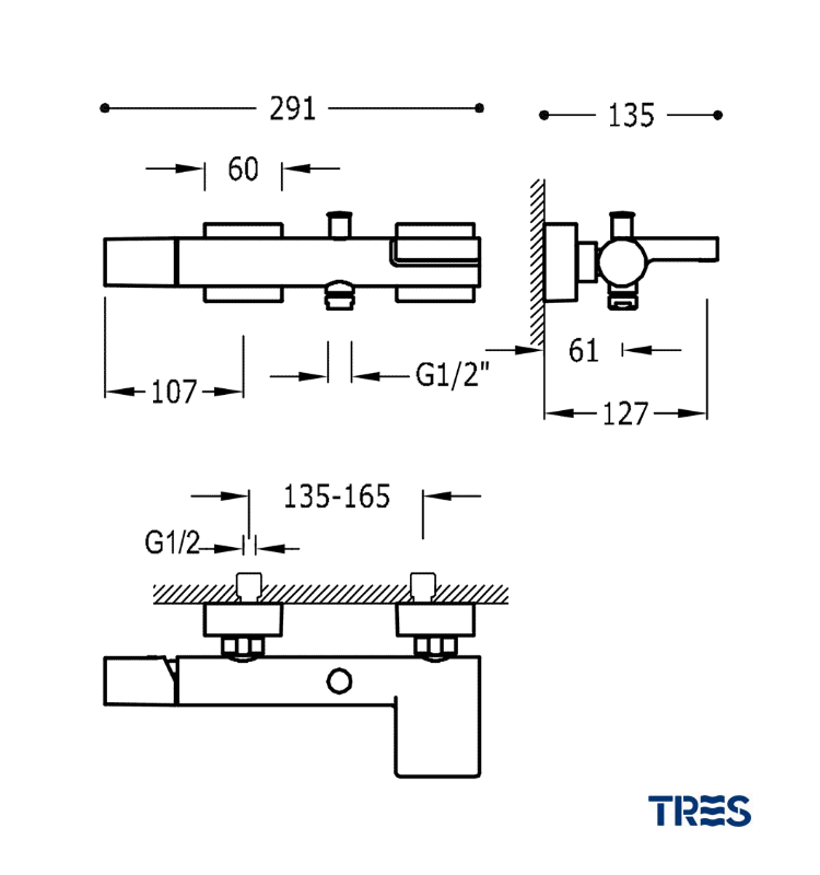 MONOMANDO BAÑERA-DUCHA PROJECT TRES GRIFERIA Ref. 21117001
