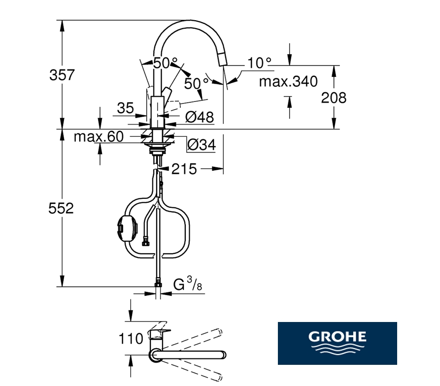 GROHE BAUEDGE MONOMANDO COCINA EXTRAIBLE