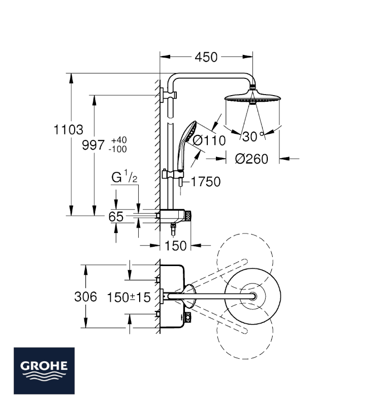 COLUMNA DUCHA EUPHORIA SMARTCONTROL SYSYEM 260 MONO GROHE