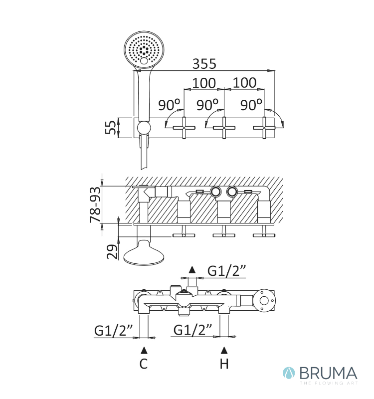 BRUMA HERA BATERIA PARA BAÑO Y DUCHA EMPOTRABLE CON SET DE DUCHA DE MANO