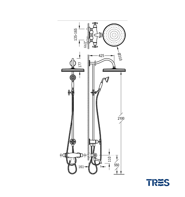 TRES CLASIC CONJUNTO BAÑO-DUCHA TERMOSTATICA