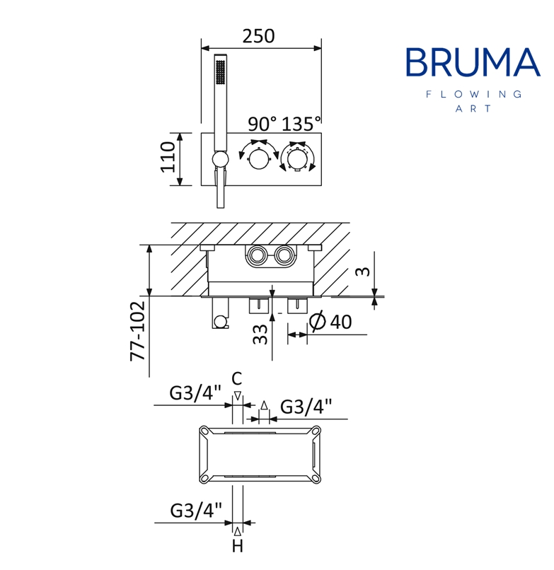 BRUMA LEAF TERMOSTATICA DUCHA EMPOTRADA 2 SALIDAS