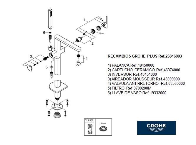 ¡Importante! para instalar con: Ref.45984001 (en sección RECAMBIOS GROHE)