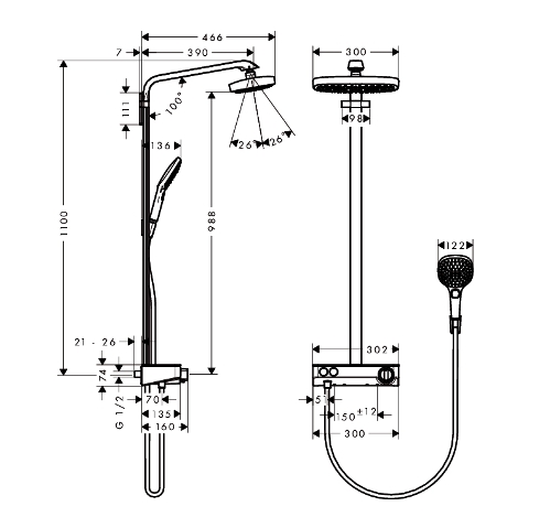 Raindance Select E 300 2jet Showerpipe HANSGROHE Ref.27126000