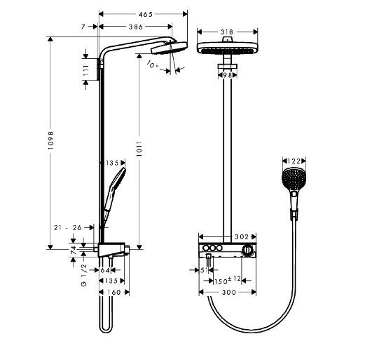 SHOWERPIPE RAINDANCE SELECT E300 HANSGROHE