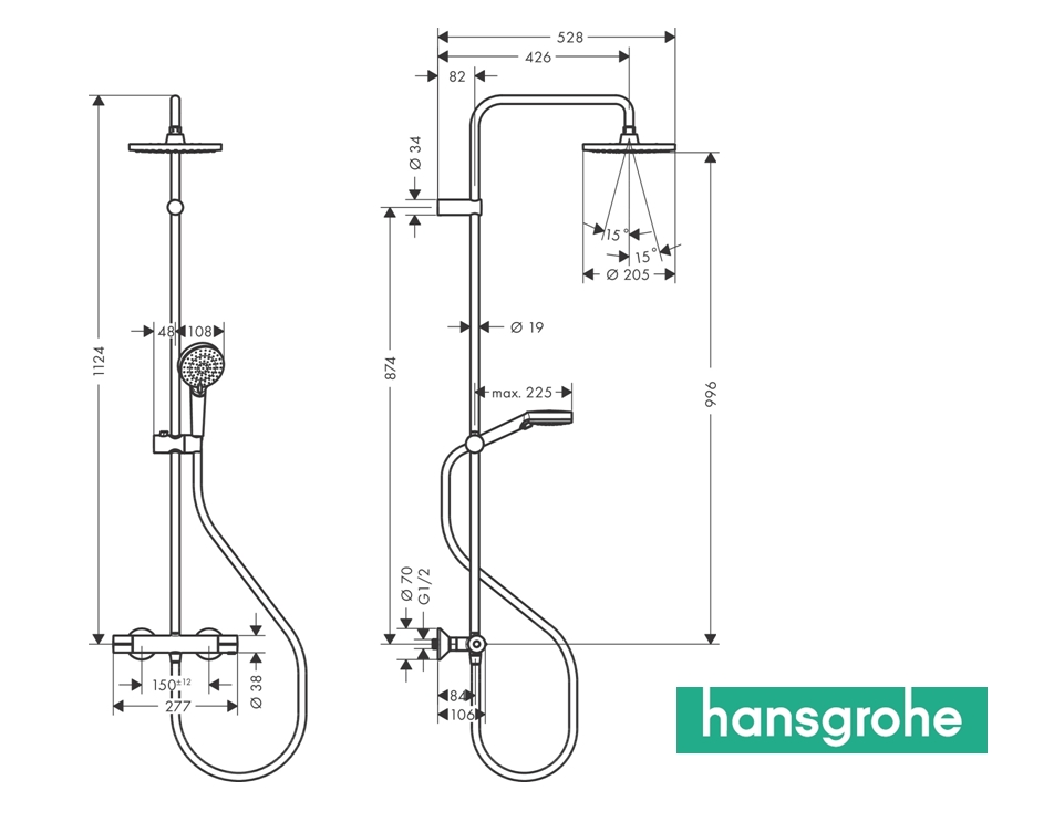 COLUMNA DUCHA TERMOSTATICA SHOWERPIPE 200 VERNIS BLEND HANSGROHE Ref.26276000
