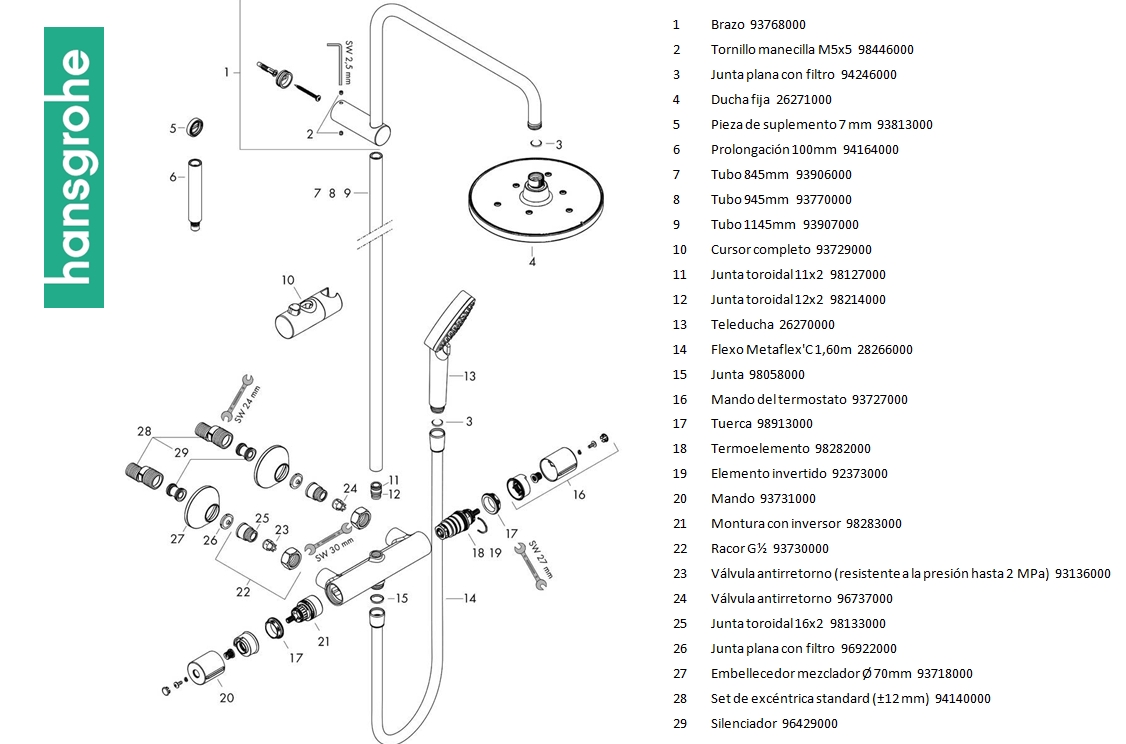 Consiste en: ducha fija, teleducha, termostato de ducha, flexo de ducha, soporte deslizante