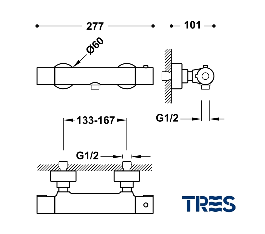 TERMOSTATICA DUCHA BASE PLUS TRES GRIFERIA Ref.21616401NM