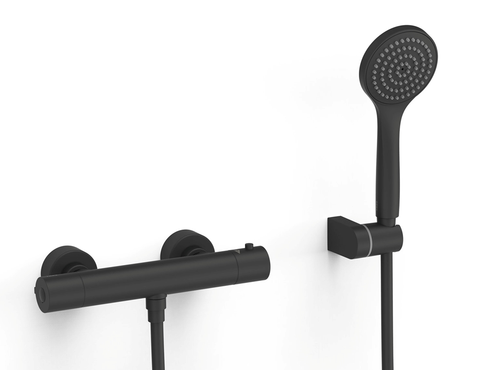 TERMOSTATICA DUCHA NEGRO MATE BASE PLUS TRES GRIFERIA