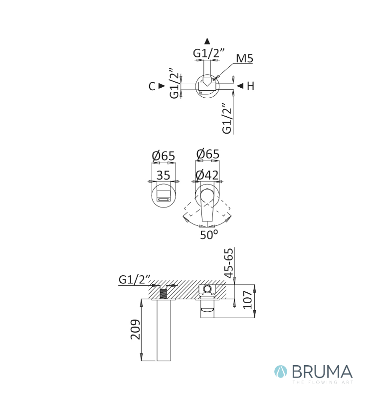 MONOMANDO LAVABO MURAL BRUMA Ref.1818401CR