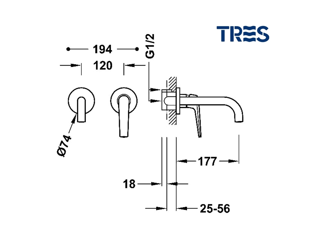 MONOMANDO LAVABO MURAL FUJI TRES GRIFERIA