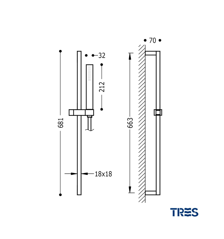KIT BARRA DUCHA CUADRO-SLIM TRES GRIFERIA