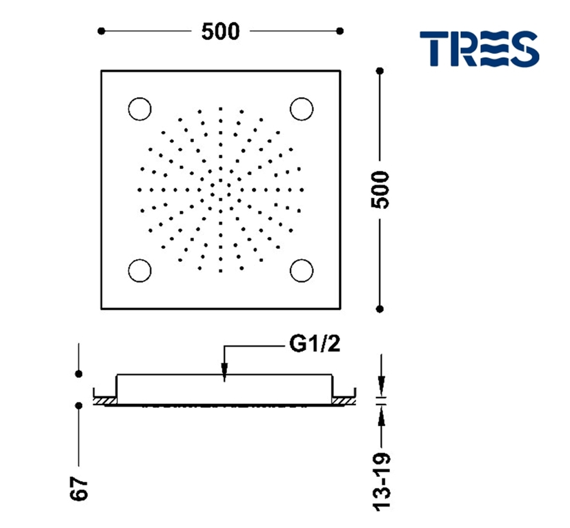 ROCIADOR DUCHA EMPOTRADO A TECHO CROMOTERAPIA TRES Ref.29996201