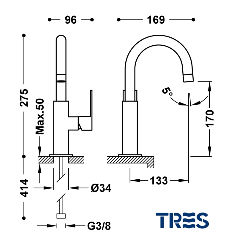 TRES LOFT MONOMANDO LAVABO BLANCO-CROMO