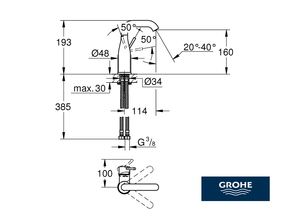 MONOMANDO DE LAVABO 1/2" ESSENCE NEGRO MATE GROHE Ref.24176KF1