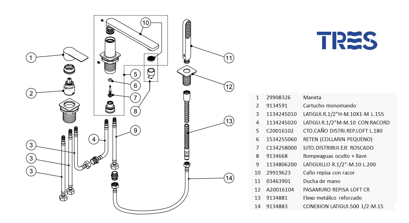 MONOMANDO BAÑO REPISA LOFT TRES GRIFERIA Ref.20016203NM