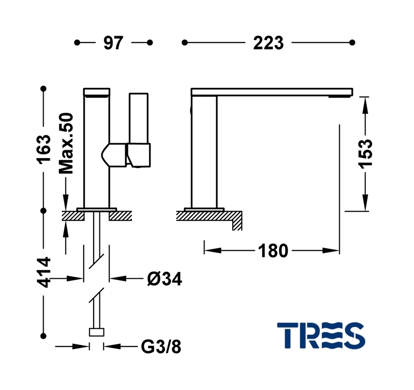 TRES PROJECT MONOMANDO LAVABO NEGRO MATE