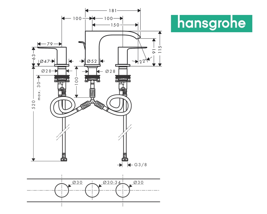 BATERIA LAVABO 90 VIVENIS HANSGROHE