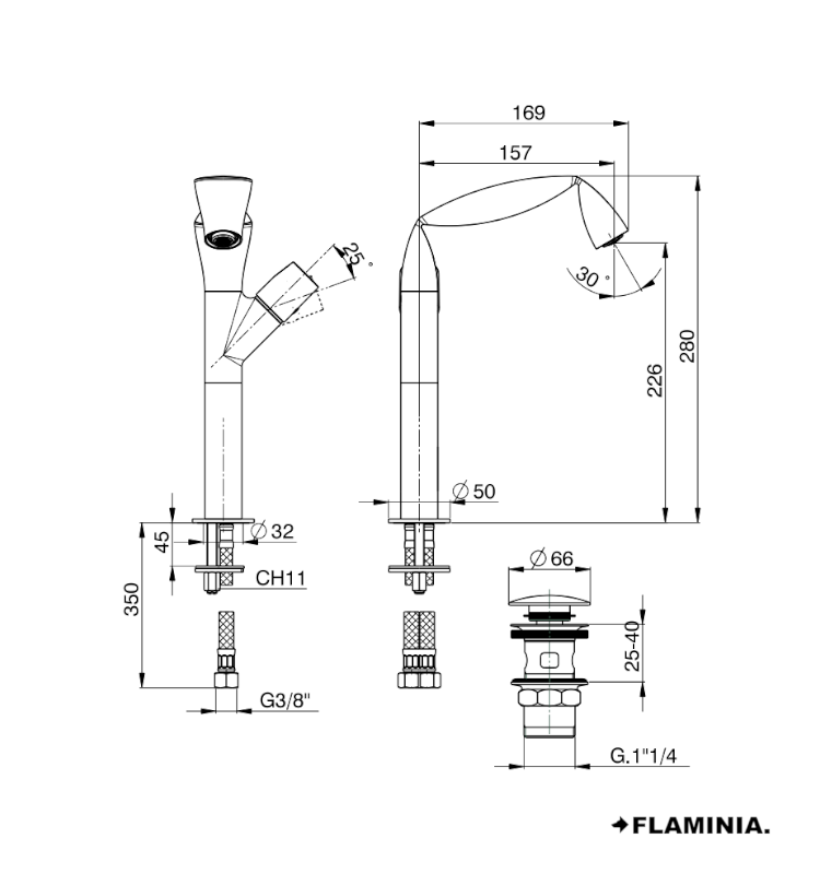 MONOMANDO LAVABO CAÑO ALTO FOLD FLAMINIA Ref. FL3055