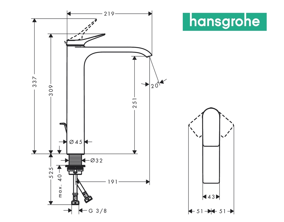 HANSGROHE VIVENIS MONOMANDO LAVABO 250