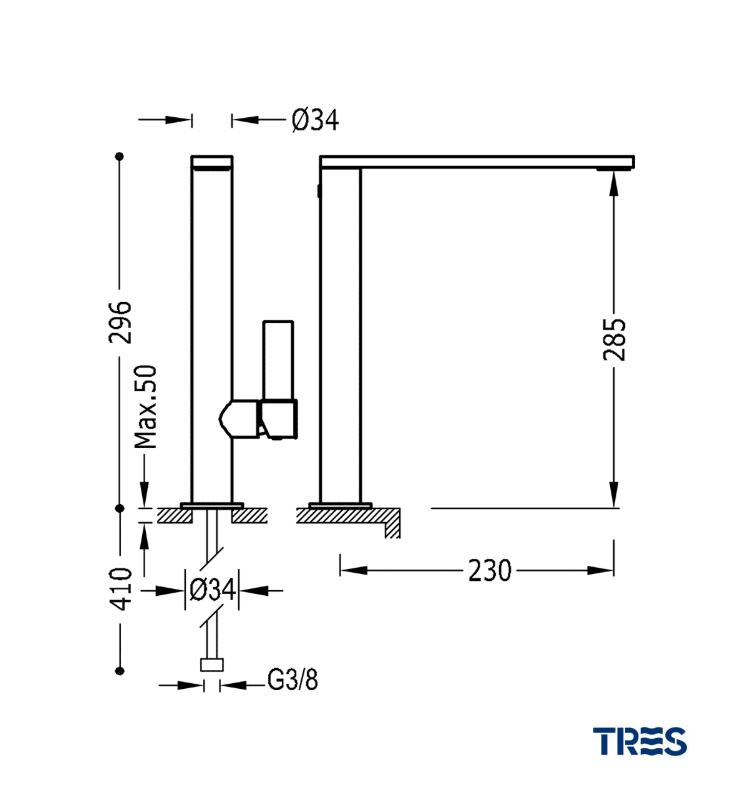 MONOMANDO LAVABO CAÑO ALTO PROJECT TRES GRIFERIA Ref. 21140501NM