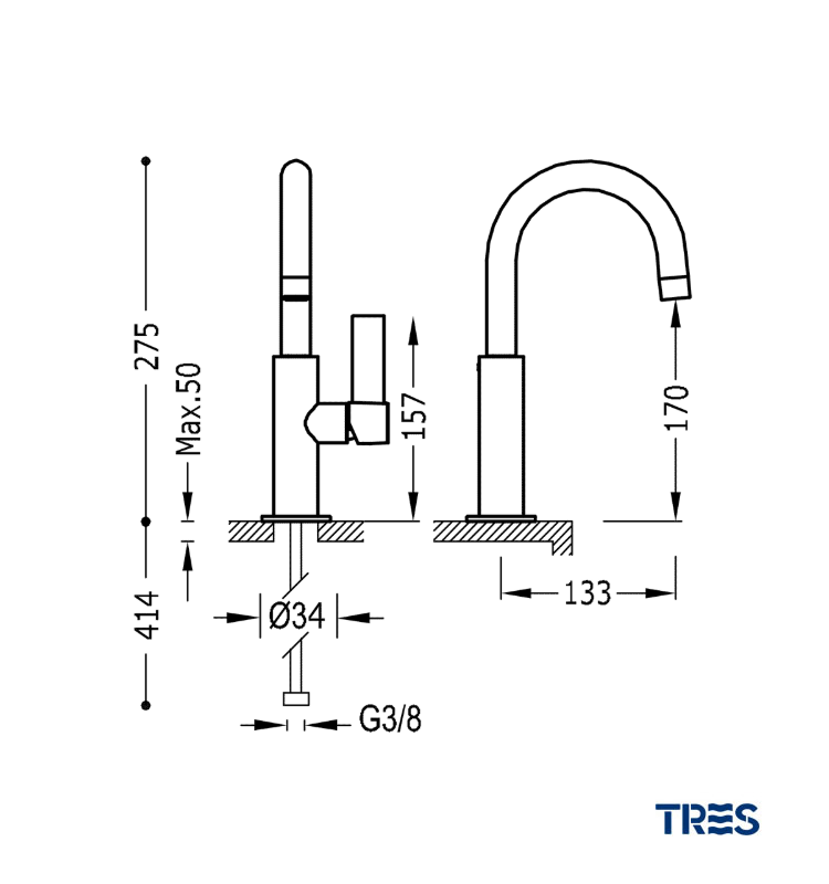 TRES PROJECT MONOMANDO LAVABO CAÑO ALTO