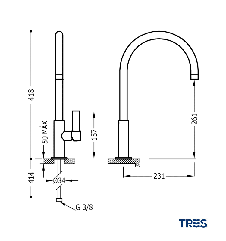 TRES PROJECT MONOMANDO LAVABO CAÑO ALTO