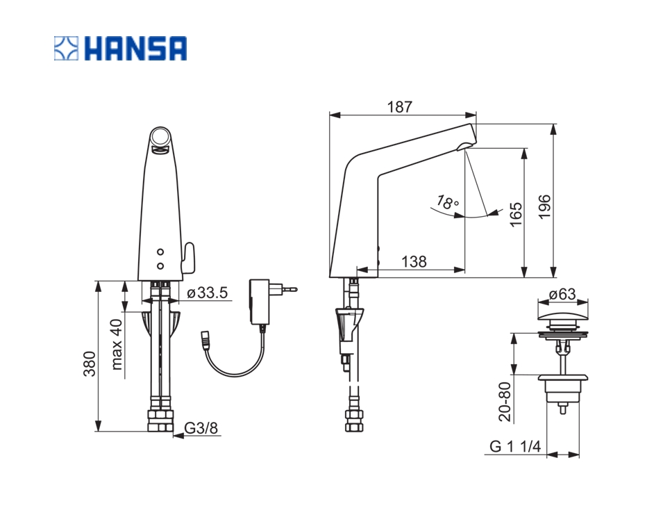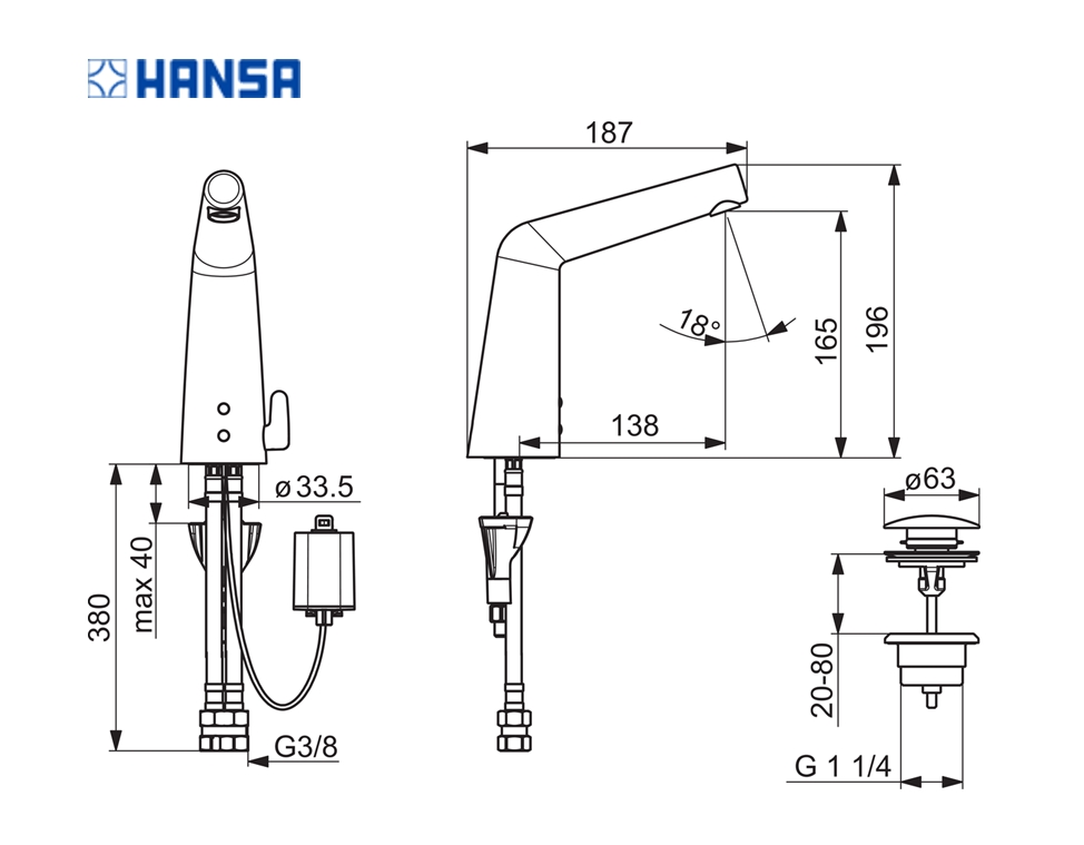HANSA DESIGNO STYLE MEZCLADOR LAVABO ELECTRONICO