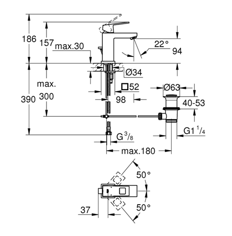 GROHE EUROCUBE MONOMANDO LAVABO