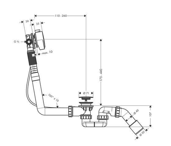 SET COMPLETO LLENADO Y VACIADOR AUTOMATICO BAÑERA HANSGROHE